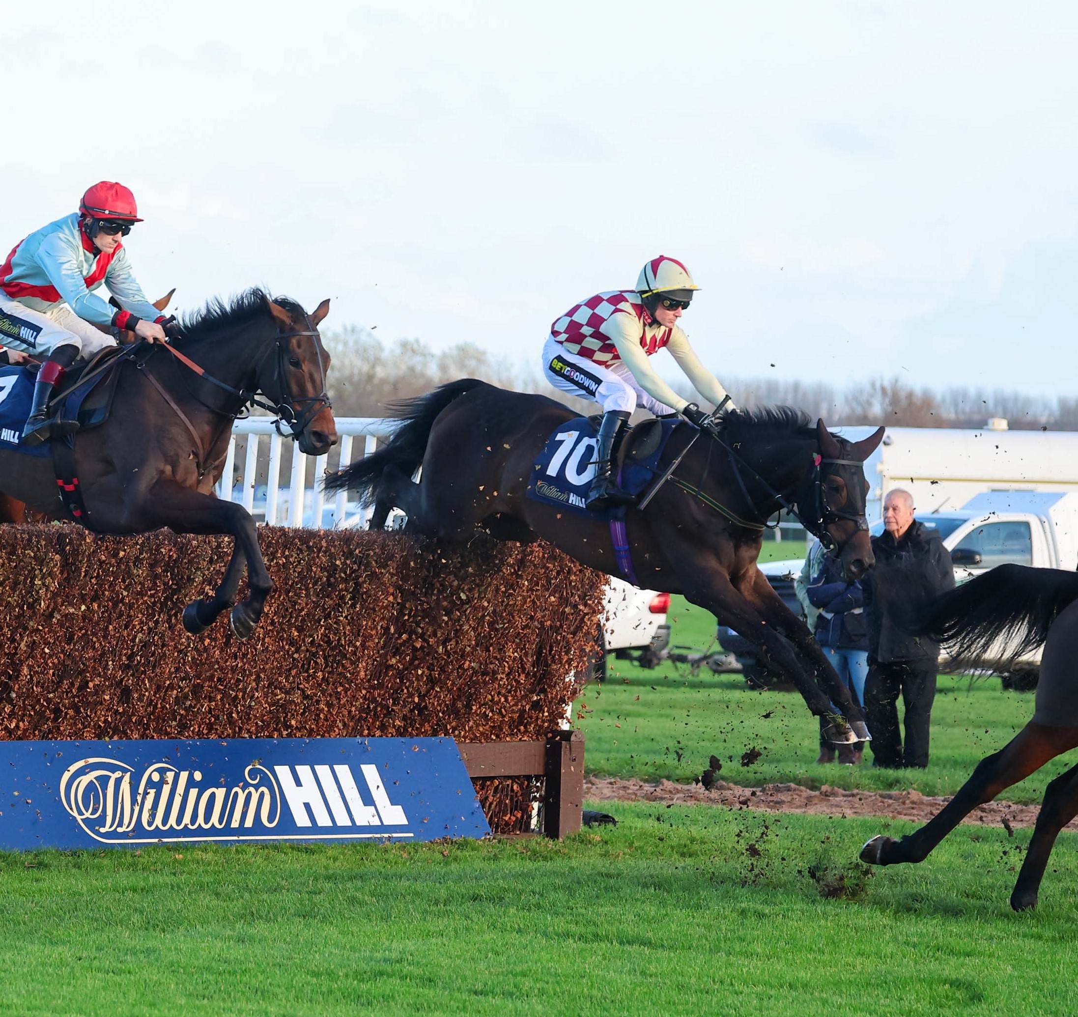 The lovely photograph of Flame soaring over one of the fences in the home straight is courtesy of Grossick Photography.