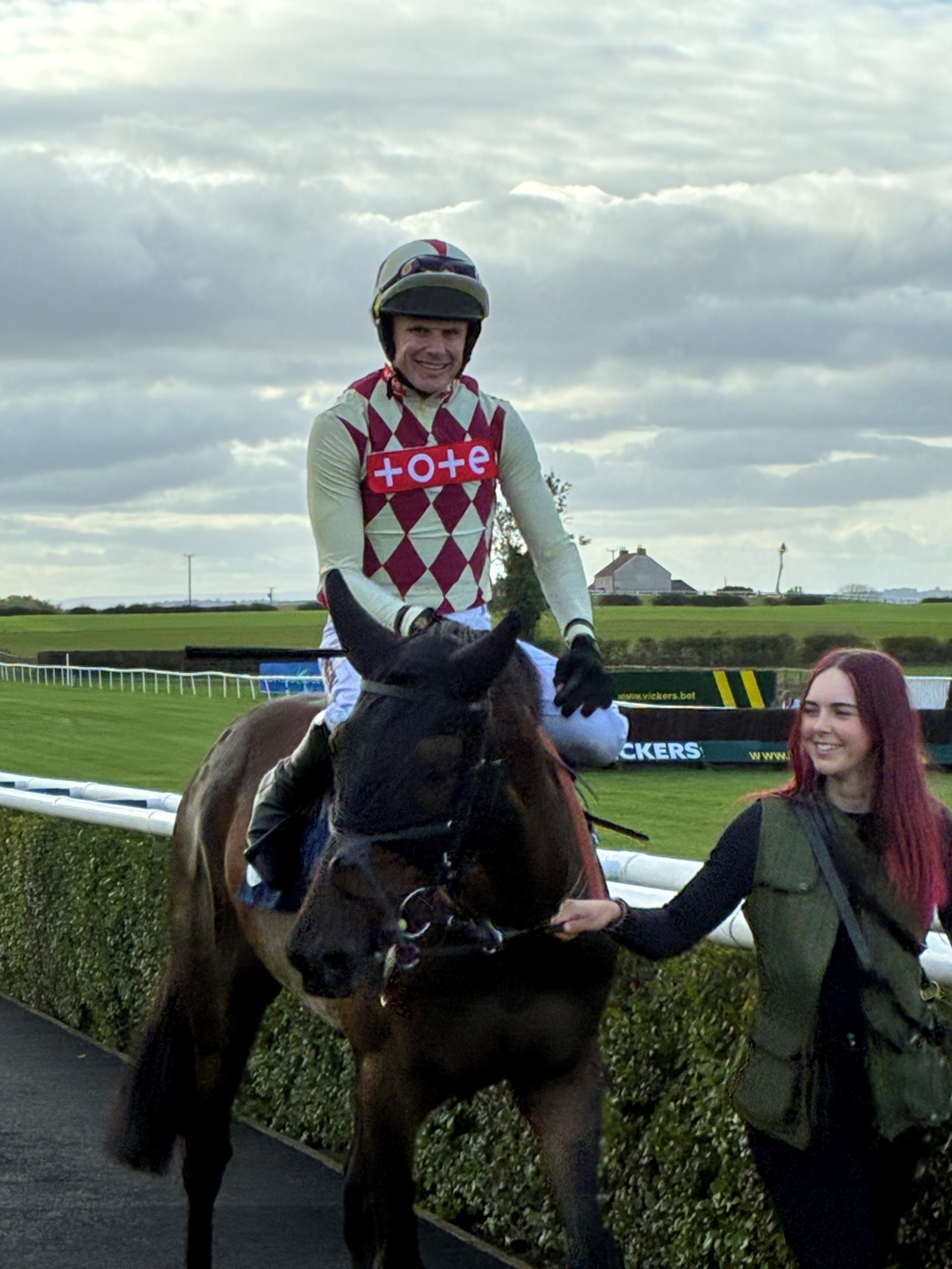 Flamelco (aka Flame) finished second at Sedgefield on 8 October on his seasonal debut after his three wins last season, most recently when winning at Plumpton in April. We had declared on ground that was described as “good/good to soft in places” but, following the first race on the card, that was changed to “good to firm/good in places”. That was not ideal for Flame, particularly when running against Summer ground horses. Ridden once again by Tom Cannon, Flame ran very well and, as Tom said, once we have ground with some cut in it, he will be back to his winning ways.